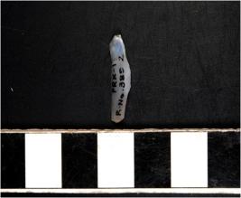| Description / विवरण | A parallel sided lunate having backed ridge with sharp rectouching of fine finish. |