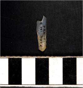 | Description / विवरण | A blade microlithic tool broad formation having double ridge on dorsal sides and blunt cutting on left side. |