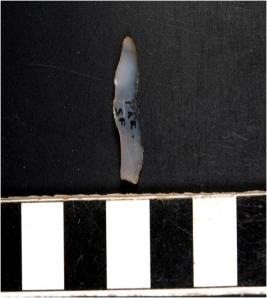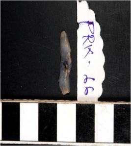 | Description / विवरण | A microlithic lunate having semi blunt edges with sharp cutting sides and triangular section. |