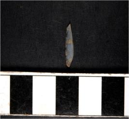 | Description / विवरण | A microlithic lunate having ridge in triangular section and broken edge. |