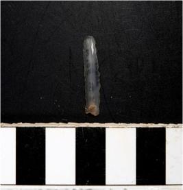 | Description / विवरण | A chalcedony blade with single ridge on dorsal side, triangular cross section and sharp cutting edges. |
