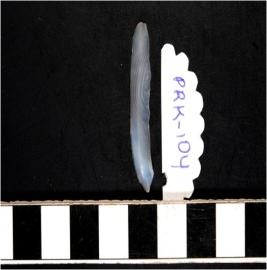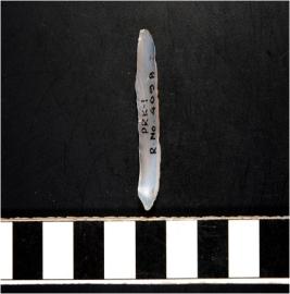 | Description / विवरण | A chalcedony blade with single ridge on dorsal side, triangular cross section and sharp cutting edges. |