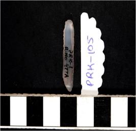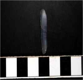 | Description / विवरण | A chalcedony blade with double ridge on dorsal side, trapezoid cross section and sharp cutting edges. |