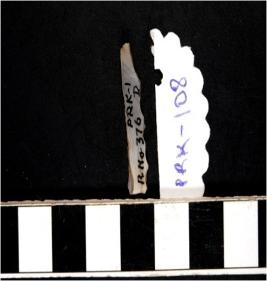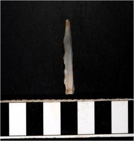 | Description / विवरण | A chalcedony blade with single ridge on dorsal side, triangular cross section and blunt cutting edges. |