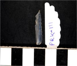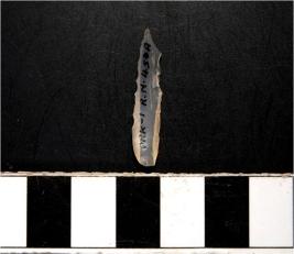 | Description / विवरण | A chalcedony blade with double ridge on dorsal side, trapezoid cross section and blunt cutting edges. |