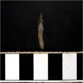 | Description / विवरण | A chalcedony blade with single ridge on dorsal side, triangular cross section and blunt cutting edges. |