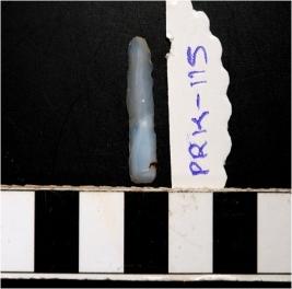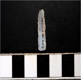 | Description / विवरण | A chalcedony blade with double ridge on dorsal side and bulb on ventral side, trapezoid cross section and sharp cutting edges. |