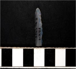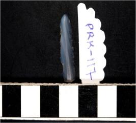| Description / विवरण | A chalcedony blade with double ridge on dorsal side, triangular cross section and sharp cutting edges. |
