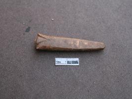 | Description / विवरण | Bone barbed and tanged arrow head |