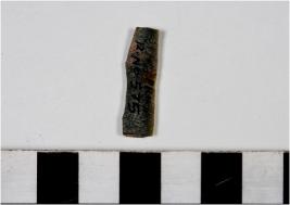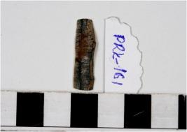 | Description / विवरण | A chert blade with double ridge on dorsal side, trapezoid cross section and sharp cutting edge. |
