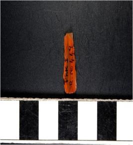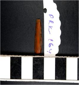 | Description / विवरण | A carnelian blade with double ridge on dorsal side, trapezoid cross section and sharp cutting edge. |
