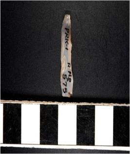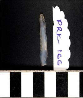 | Description / विवरण | A chalcedony blade with double ridge on dorsal side, bulb on ventral side, trapezoid cross section and sharp cutting edges. |