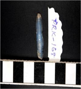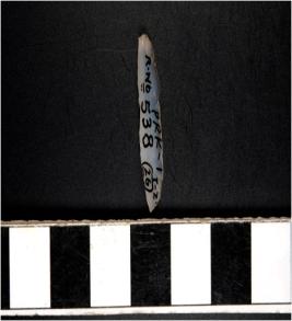 | Description / विवरण | A chalcedony blade with single ridge on dorsal side, triangular cross section, bulb on ventral side and sharp cutting edges. |