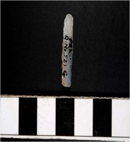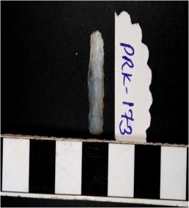 | Description / विवरण | A chalcedony blade with single ridge on dorsal side, triangular cross section, bulb on ventral side and sharp cutting edges. |