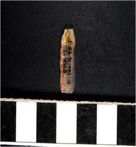 | Description / विवरण | A chalcedony blade with single ridge on dorsal side, triangular cross section and sharp cutting edges. |
