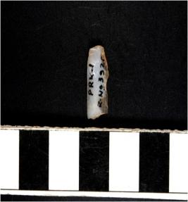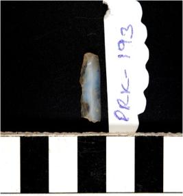 | Description / विवरण | A chalcedony blade with single ridge on dorsal side, bulb on ventral side, triangular cross section and sharp cutting edges. |