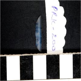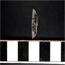 | Description / विवरण | A chalcedony crescent shaped lunate with blunt straight edge and sharpened curved cutting edge. |