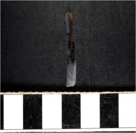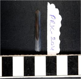 | Description / विवरण | A chalcedony blade with double ridge on dorsal side, trapezoid cross section and sharp cutting edges. |