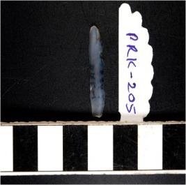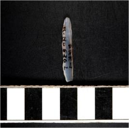 | Description / विवरण | A chalcedony blade with double ridge on dorsal side, trapezoid cross section, bulb on ventral side and sharp cutting edges. |