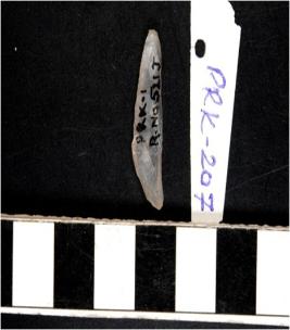 | Description / विवरण | A chalcedony lunate with single ridge on dorsal side, triangular cross section, bulb on ventral side and sharp cutting edges. |
