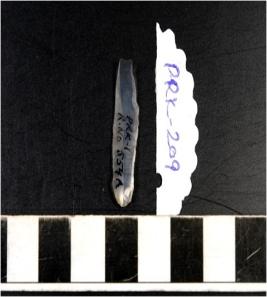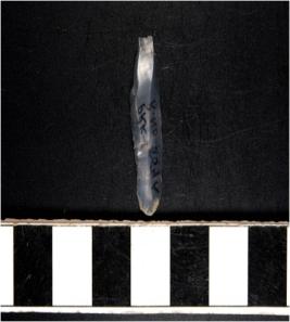 | Description / विवरण | A chalcedony blade with double ridge on dorsal side, trapezoid cross section, bulb on ventral side and sharp cutting edges. |
