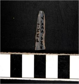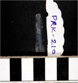 | Description / विवरण | A chalcedony blade with double ridge on dorsal side, trapezoid cross section, bulb on ventral side and sharp cutting edges. |