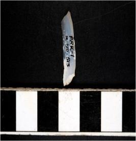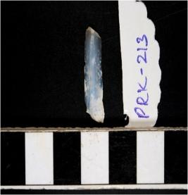 | Description / विवरण | A chalcedony blade with double ridge on dorsal side, trapezoid cross section and sharp cutting edges. |