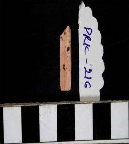 | Description / विवरण | A chert blade with single ridge on dorsal side, triangular cross section and sharp cutting edges. |