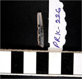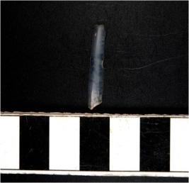 | Description / विवरण | A chalcedony blade with double ridge on dorsal side, trapezoid cross section and sharp cutting edges. |