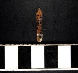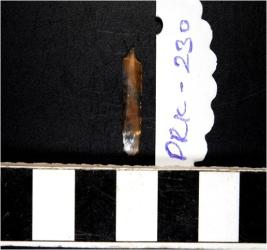 | Description / विवरण | A carnelian blade with double ridge on dorsal side, trapezoid cross section and sharp cutting edges. |