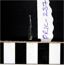 | Description / विवरण | A chalcedony blade with double ridge on dorsal side, trapezoid cross section and sharp cutting edges. |