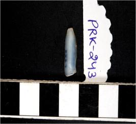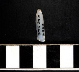 | Description / विवरण | A chalcedony blade with single ridge on dorsal side, triangular cross section, sharp cutting edges and pointed at one end. |