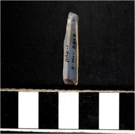 | Description / विवरण | A chalcedony blade with single ridge on dorsal side, triangular cross section and sharp cutting edges. |