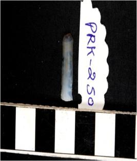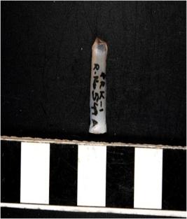 | Description / विवरण | A chalcedony blade with double ridge on dorsal side, trapezoid cross section and sharp cutting edges. |