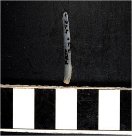 | Description / विवरण | A chalcedony blade with single ridge on dorsal side, triangular cross section, sharp cutting edges and pointed at one end. |