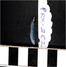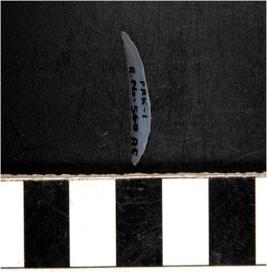 | Description / विवरण | A chalcedony small crescent shaped lunate with blunt straight edge and a sharpened curved cutting edge. |