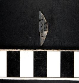| Description / विवरण | A chalcedony small crescent shaped lunate with blunt straight edge and a sharpened curved cutting edge. |
