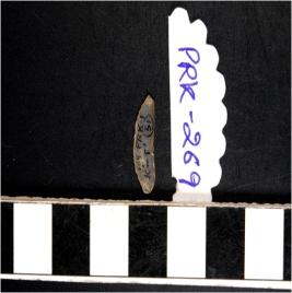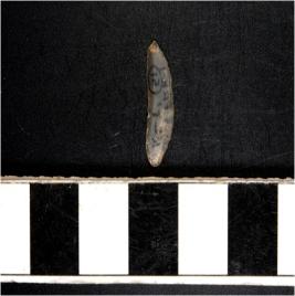 | Description / विवरण | A chalcedony small crescent shaped lunate with blunt straight edge and a sharpened curved cutting edge. |