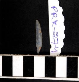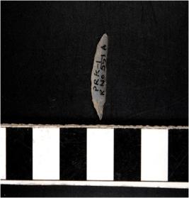 | Description / विवरण | A chalcedony small crescent shaped lunate with blunt straight edge and a sharpened curved cutting edge. |