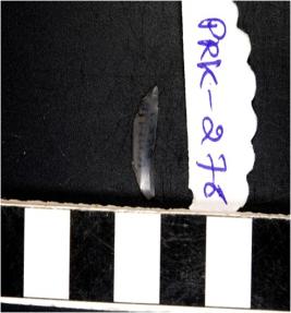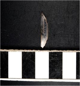 | Description / विवरण | A chalcedony small crescent shaped lunate with blunt straight edge and a sharpened curved cutting edge. |