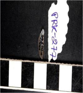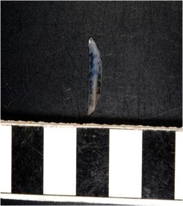 | Description / विवरण | A chalcedony small crescent shaped lunate with blunt straight edge and a sharpened curved cutting edge. |