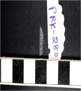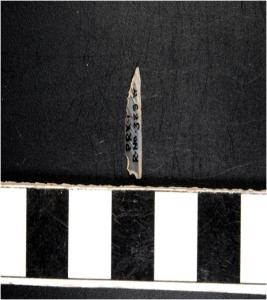 | Description / विवरण | A chalcedony small crescent shaped lunate with blunt straight edge and a sharpened curved cutting edge. |