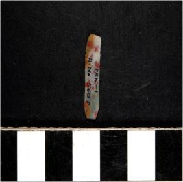 | Description / विवरण | A chert blade with double ridge on dorsal side, trapezoid cross section and blunt cutting edges. |