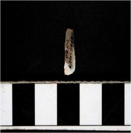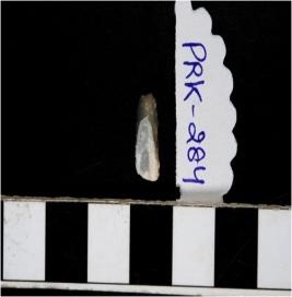 | Description / विवरण | A stone blade with single ridge on dorsal side, traingular cross section and blunt cutting edges. |