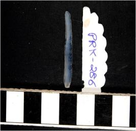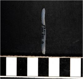 | Description / विवरण | A chalcedony blade with single ridge on dorsal side, triangular cross section sharp cutting edges and bulb on ventral side. |