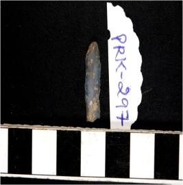 | Description / विवरण | A chalcedony blade with single ridge on dorsal side, triangular cross section, bulb on ventral side and sharp cutting edges. |