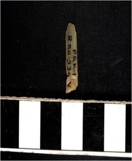 | Description / विवरण | A chalcedony blade with double ridge on dorsal side, trapezoid cross section and sharp cutting edges. |