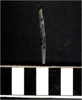 | Description / विवरण | A chalcedony blade with single ridge on dorsal side, triangular cross section and sharp cutting edges. |