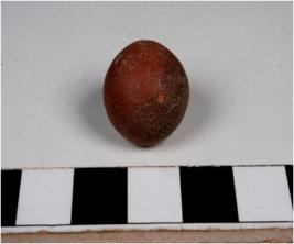 | Description / विवरण | A terracotta sling ball of smooth surface. |