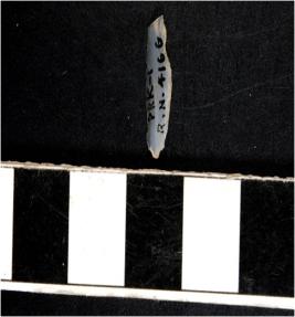 | Description / विवरण | A chalcedony blade with single ridge on dorsal side, triangular cross section and sharp cutting edges. |